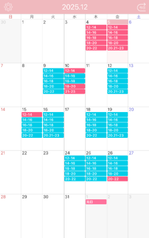 【12月の出勤予定】