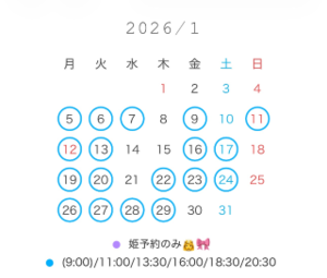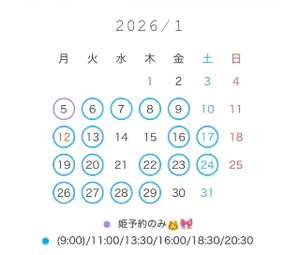 2026年1月の御予約も受付中です