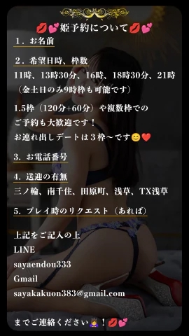 ご新規様もさやかに直接LINEorGmailで連絡してください~♡
