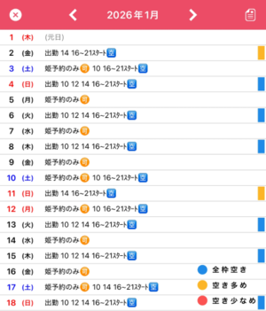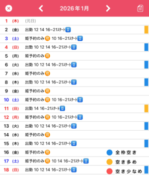??1月の姫予約状況です