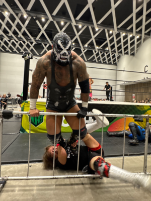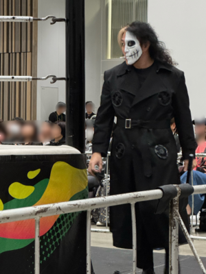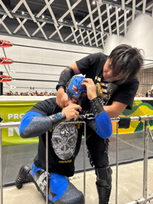 ?BUSHI選手のマスクを剥がそうとする政岡選手![]()