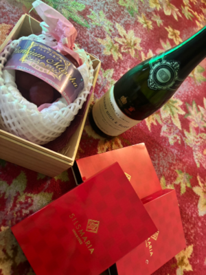 シャンパン2本に高級ぶどう、チョコも本当にありがとう????