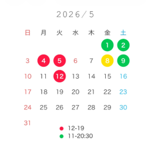 5月後半は少し長めのお休み頂くので