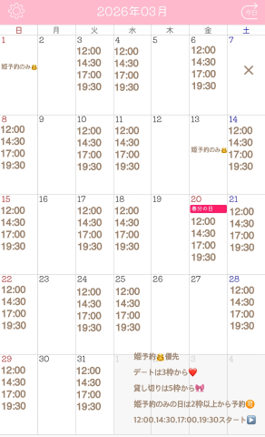 貸切は6枠(お会いしたことある方限定)