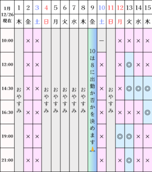 ?空き状況(12/26現在)