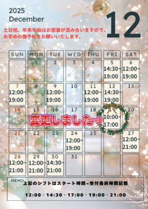 12月27日(土)12:00~14:00満