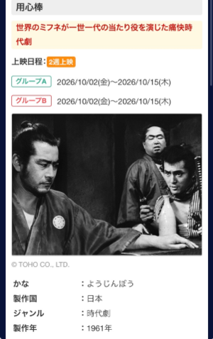 まだ観た事のない昔の映画をスクリーンで観れるなんて夢のようですし♪
