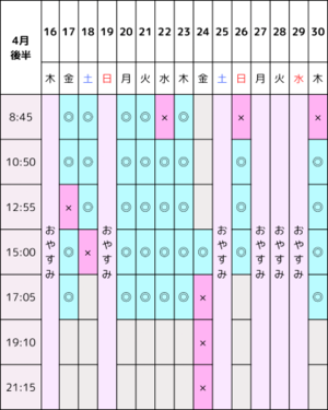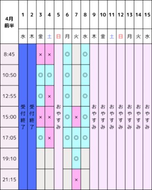 特に【土日祝】と【12:55/15:00】