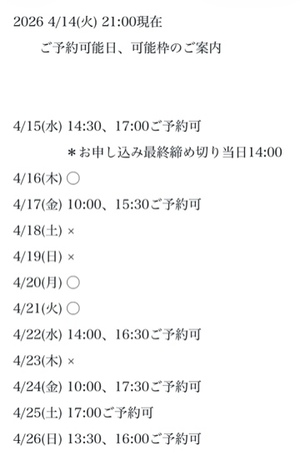 完全ご予約にて