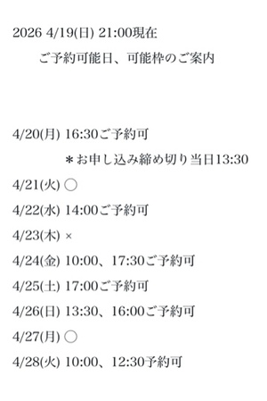 3枠6時間以上です♪(要ご相談)