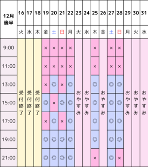 下記は年内の空き枠になります