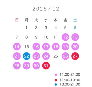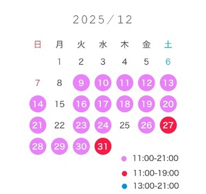 年末や、土日はお部屋が埋まりやすいためお早めの約束おすすめです✨