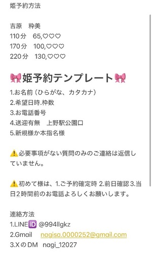 LINEで姫予約ご希望の場合は🆔か画像をスクリーンショットして追加よろしくお願いします🙇