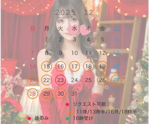 12月はとてもお部屋が混雑するためお早目のお約束がうれしいですカレンダーを参考によろしくお願いします