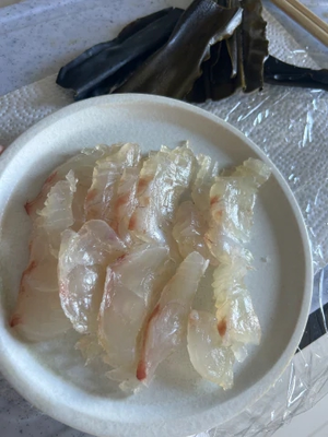 自炊もよくするのですが、今回はこの記念すべき米に合わせて鯛の昆布締めを作りました