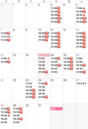 年内の最新予約状況です