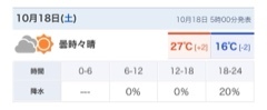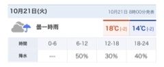 曇り一時雨 最高気温 18°c