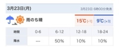 雨のち晴れ 最高気温 15°c