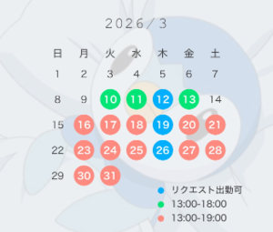 リクエスト出勤は変わらず前日までにお問い合わせ