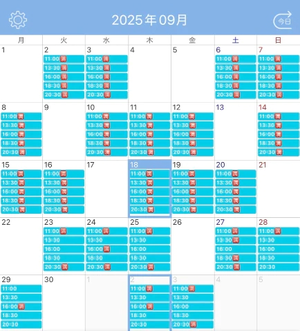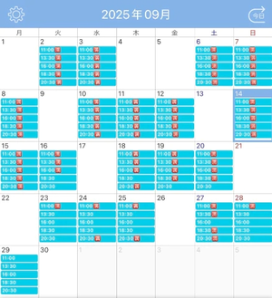 9月の残り枠と10月の予定です