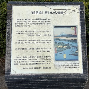 鶴見川を題材とする歌、俳句、絵が数多く残されていたとの碑が設置されてありました。写真の絵は広重が描いた絵です。