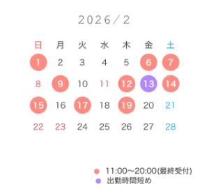 2月の空き枠はこちらです?