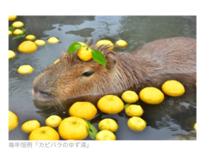 ネットのゆずからもいい香りがして、カピバラみたいになってました〜
