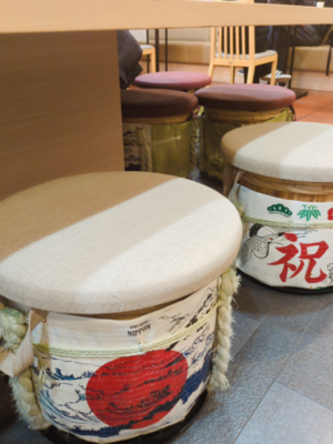 お店のイスがね、日本酒の樽だったのー!!!