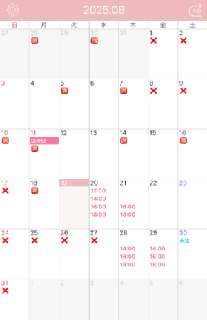 【8月の出勤予定】