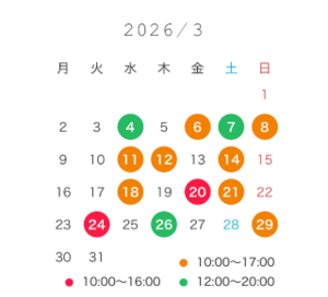 出勤時間外ご希望の方は前日までご連絡ください