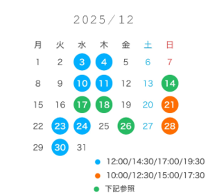 ※出勤時間外ご希望の方は前日までご連絡ください