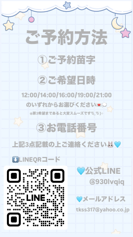 ご予約ご希望の方はLINE もしくはメアド(tkss317@yahoo.co.jp) まで下記3点を記載の上ご連絡ください?