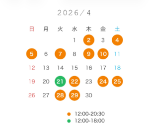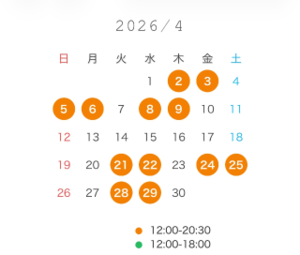 日曜日もご予約取れやすくなってますので