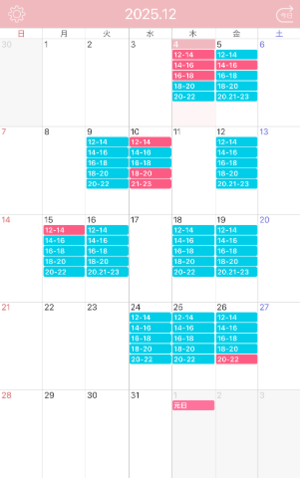 【12月の出勤予定】