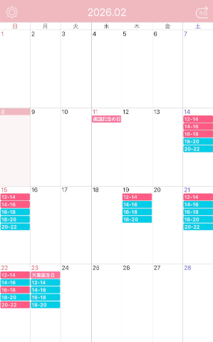 【2月の出勤予定】