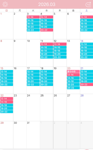 次回の出勤は?3/3(火)12時〜20時