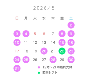 5月も取り急ぎのカレンダー載せておきます!