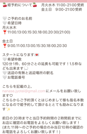 当日前日ですと私が空いていても、お部屋が無くてご案内できない可能性があるので、ご予約をお考えの方はお早めに私に姫予約の連絡いただけると嬉しいです