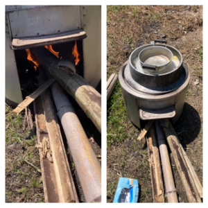 そして火を起こして茹でてました。