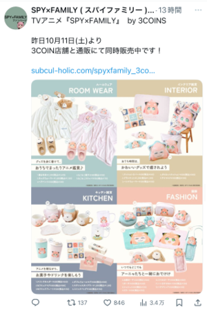 後、藍瑠SPY×FAMILY大好きなのですが3COINでなんとグッズ販売中??