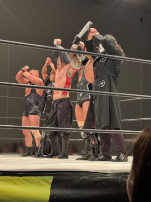 そして、最後にヨシ・タツ選手が出てきて、まさかのリングに推し3人という激アツな展開にimg