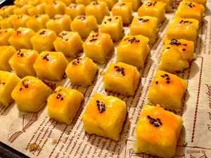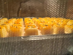 卵黄塗って黒ごままぶして