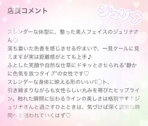 → 「ジュリナを選んでよかったな」「楽しかったな」って思ってもらえる時間になると思います。