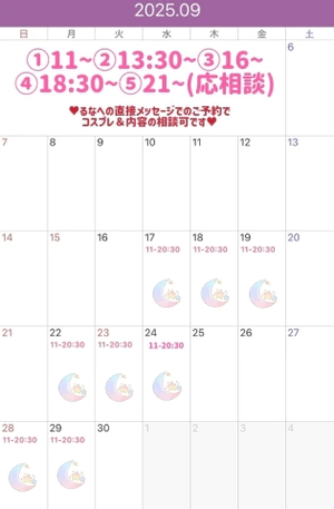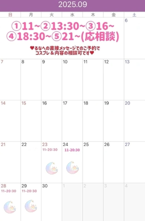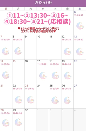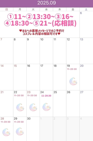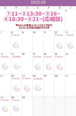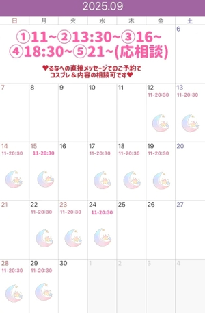 9月の出勤予定ですが