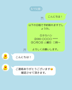 ご連絡時間は早朝や深夜問わずいつでも大歓迎ですのでお気軽にお願いいたします?