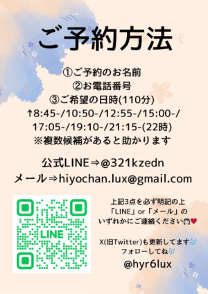 ご予約の際はひよりに直接お問い合わせいただく