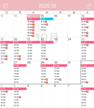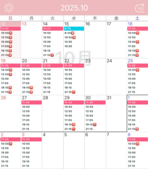 土日平日関わらず11.13.15.17時のお時間帯は