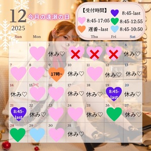 12/30(火)が2025年の逢瀬の最終日なので