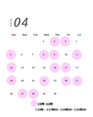 ?〇日?????15:00〜 17:05〜19:30〜21:30〜
