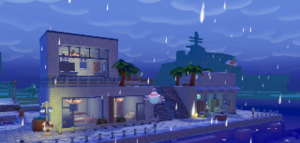 ドンヨリ海辺の街の何か建物があったであろう場所に建ててみました?